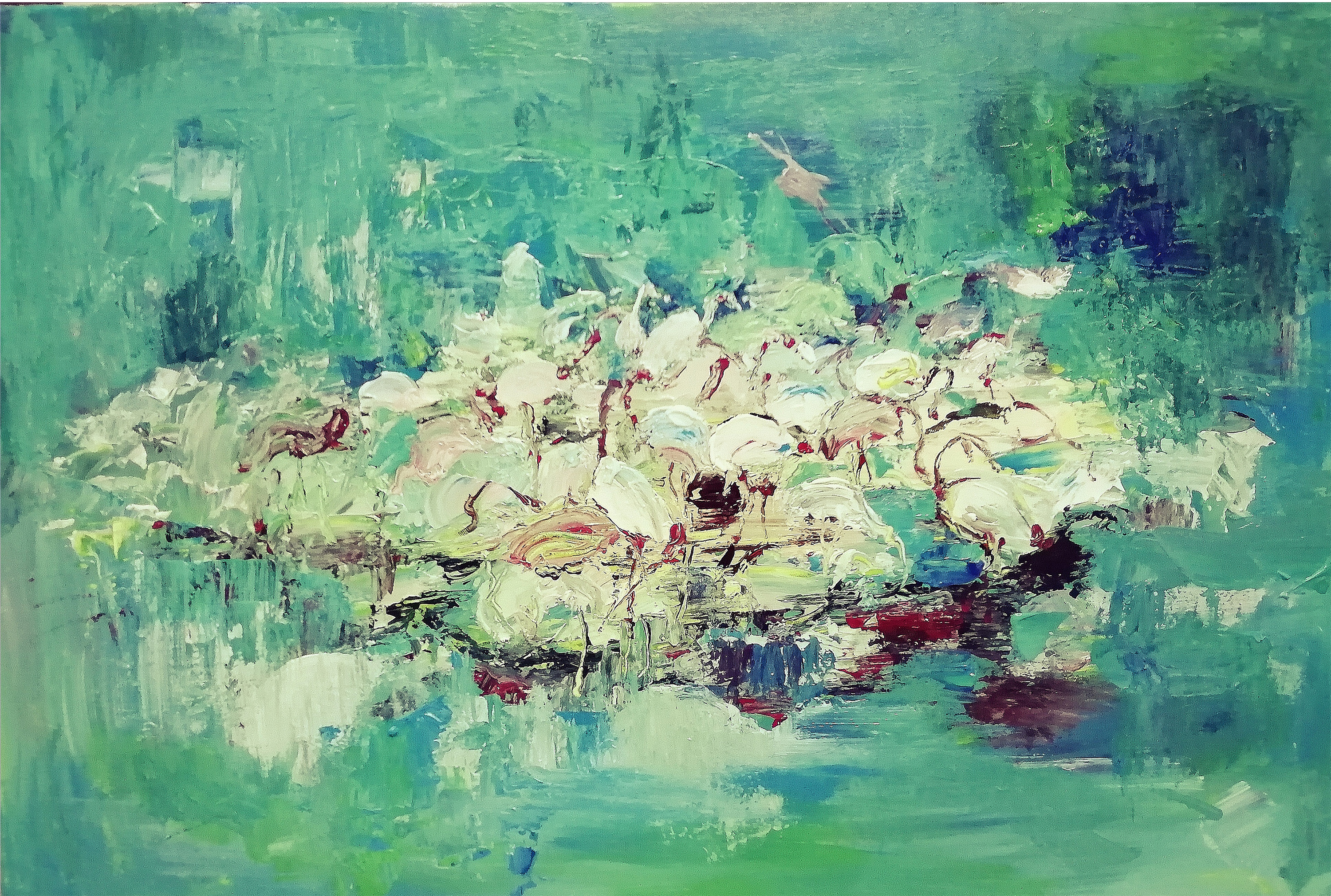 在创作中,我主要用刮刀的技法,做大的笔触机理和注重颜色的控制和情感的表达,来体现一种的印象感,这种印象感似乎有着一种不确定性,这种不确定性的最早我还是从艺术家方力均那里得知的,更重要的是,画出了自己的不被太多规则所牵制的自由感!