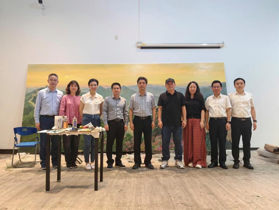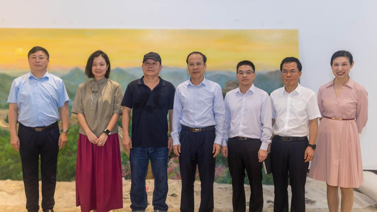 胡钦太、邱学青还参观了学院张洪亮教授等4名教师为学校大讲堂会议厅创作的巨幅油画创作《基业永固》,并给予了高度赞扬。