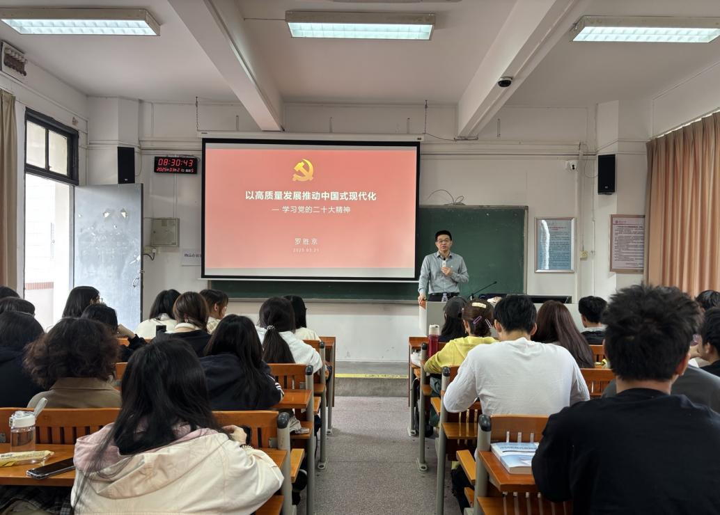 为深入学习贯彻党的二十大精神和二十届二中、三中全会精神,贯彻落实2025广东省高质量发展大会精神,充分发挥思想政治理论课的关键作用,学院党委书记罗胜京近日为2024级视觉传达设计专业和数字媒体技术同学讲授新学期第一堂思想政治理论课。